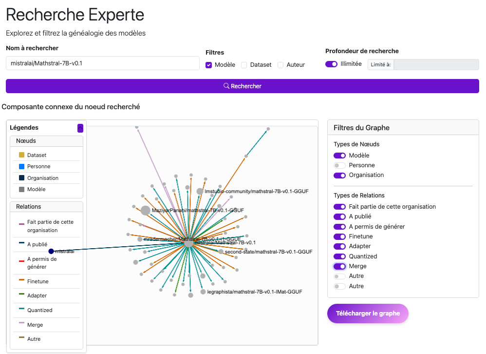 “Présentation du projet : expérimenter des scénarios d’exercice de droits pour éclairer la position de la CNIL”, sur le site du Laboratoire d’innovation numérique de la CNIL : présentation d’un démonstrateur publié sur HuggingFace qui permet de suivre la “généalogie” d’un modèle de langage ou d’une base de données open source, pour déterminer leur traçabilité et faciliter les droits d’opposition ou d’effacement des données (lien direct vers l’outil et sa notice).