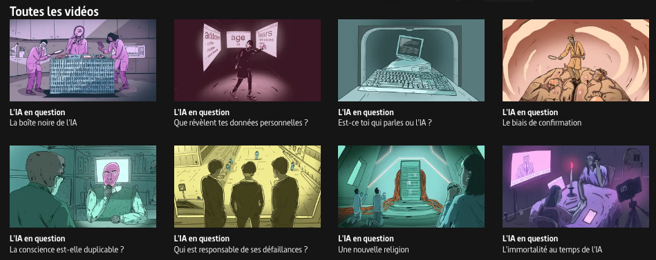 “L’IA en question”, une mini-série de 8 épisodes de 4 à 5 minutes par les documentaristes Hans Block et Moritz Riesewieck qui abordent des dimensions techniques, sociales et philosophiques de l'intelligence artificielle.